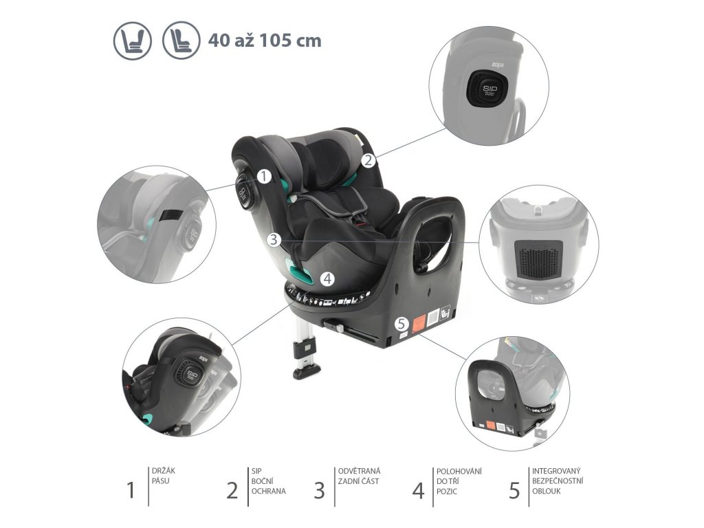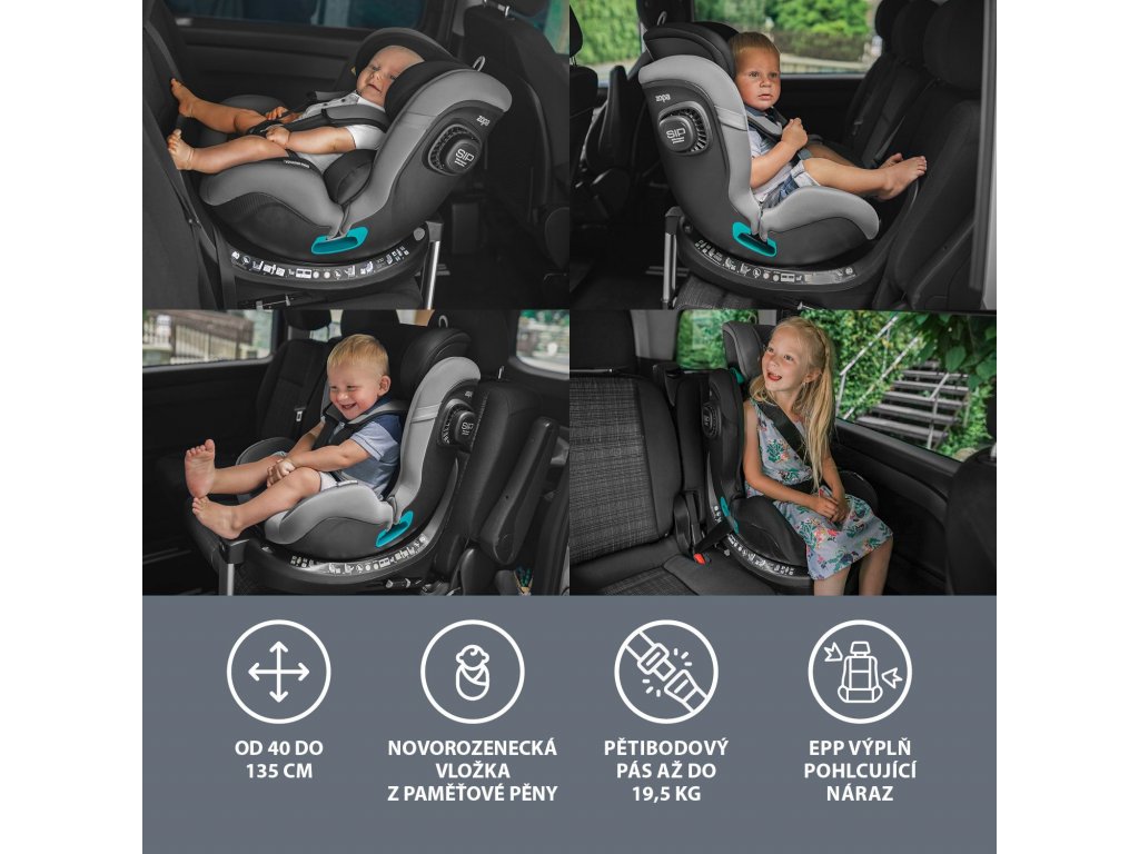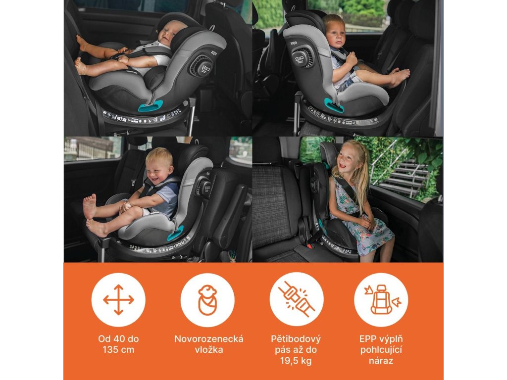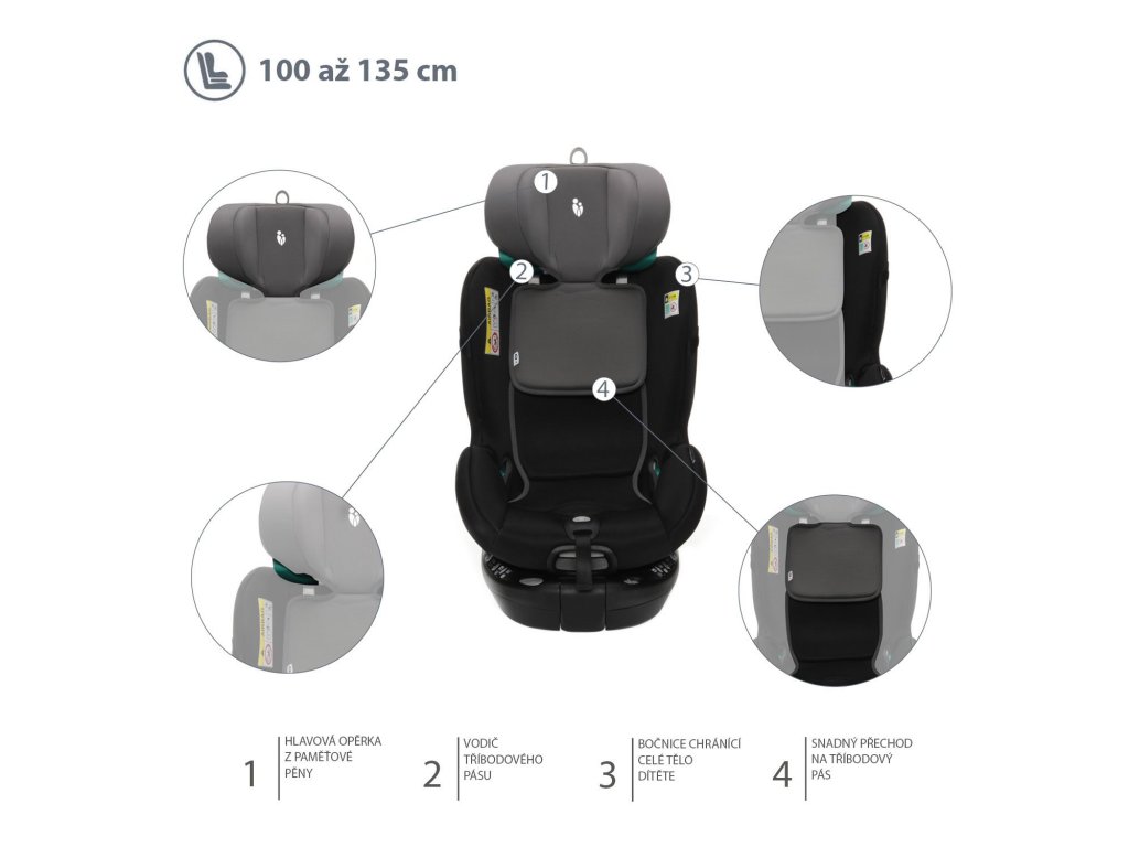 Otočná sedačka pro děti od narození až do výšky 135 cm, vnitřní pásy do 19kg dítěte