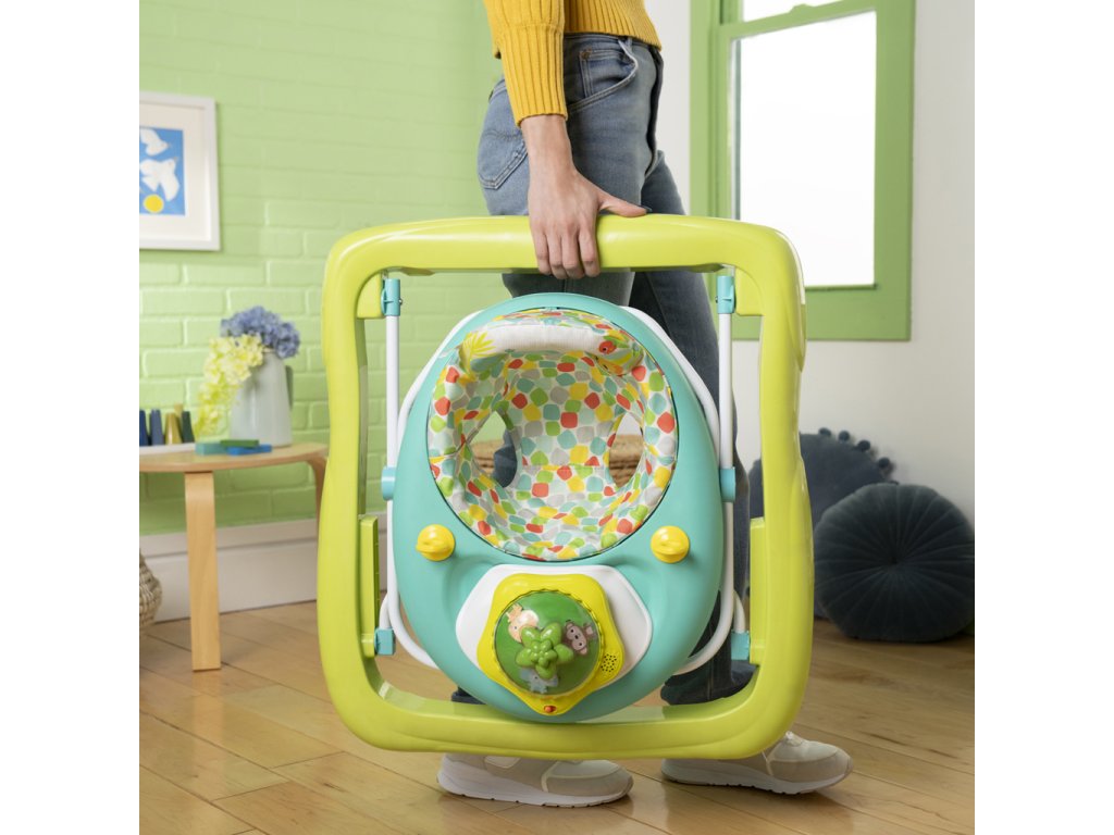 Chodítko odměňuje děťátko světýlky a zvuky při každém pokusu o krok a obsahuje i odnímatelnou svítící a točící se hračku - opičku, kterou lze používat ve dvou režimech jako součást chodítka nebo samostatně na hraní na podlaze.