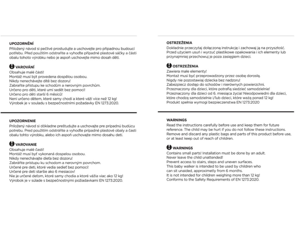 - Kompaktní skladování: dětské chodítko lze zcela složit pro snadné skladování a přepravu.