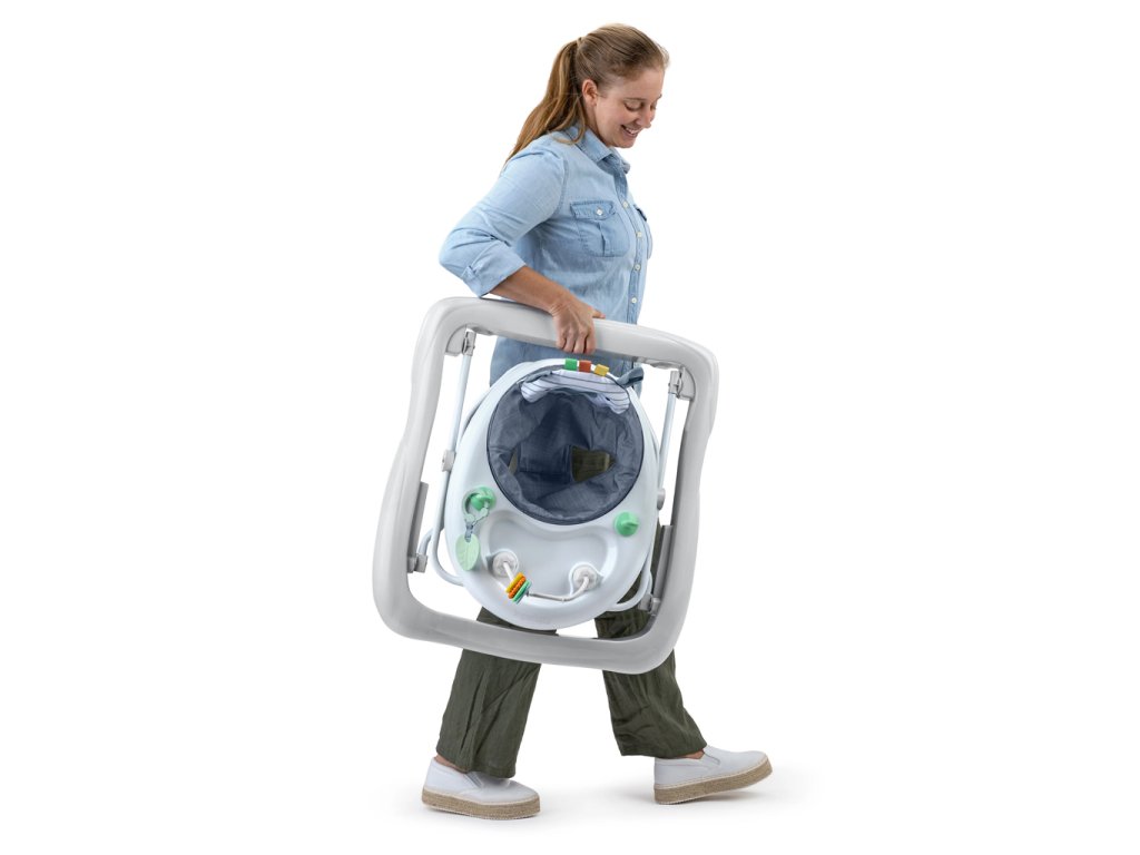 - Chodítko má skládací design pro snadné uložení, rukojeť pro pohodlný přenos a je snadno čistitelné díky pratelnému, odnímatelnému potahu sedáku.
