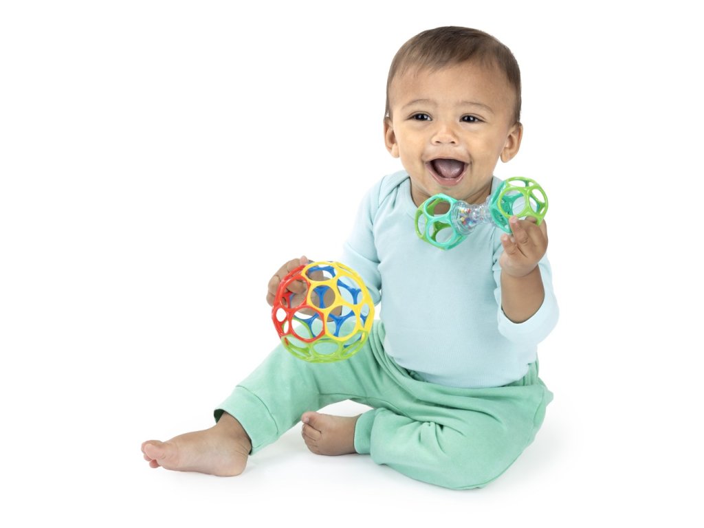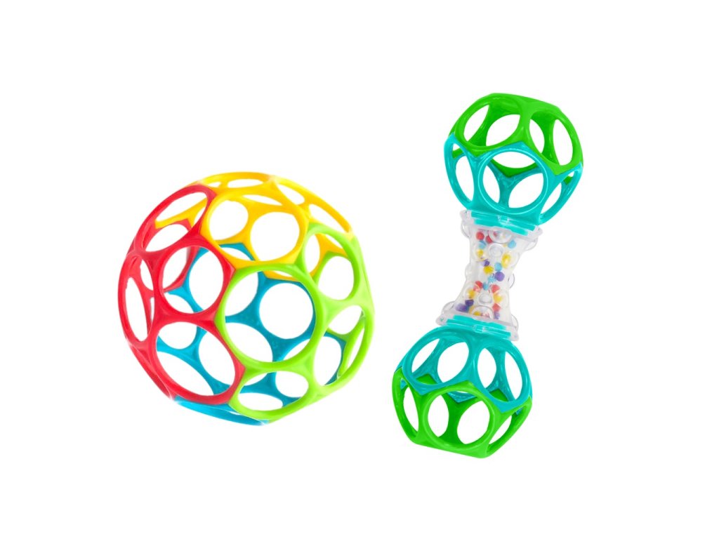 - Dárková sada Grasp the Day obsahuje 2 nejprodávanější hračky Oball od Bright Starts.