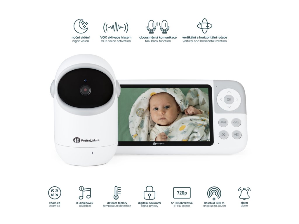 Funkce alarmu slouží jako časovač či připomínka – například na krmení, přebalení nebo kontrolu miminka. Navíc tato dětská chůvička nabízí mnoho funkcí, které usnadňují každodenní péči.