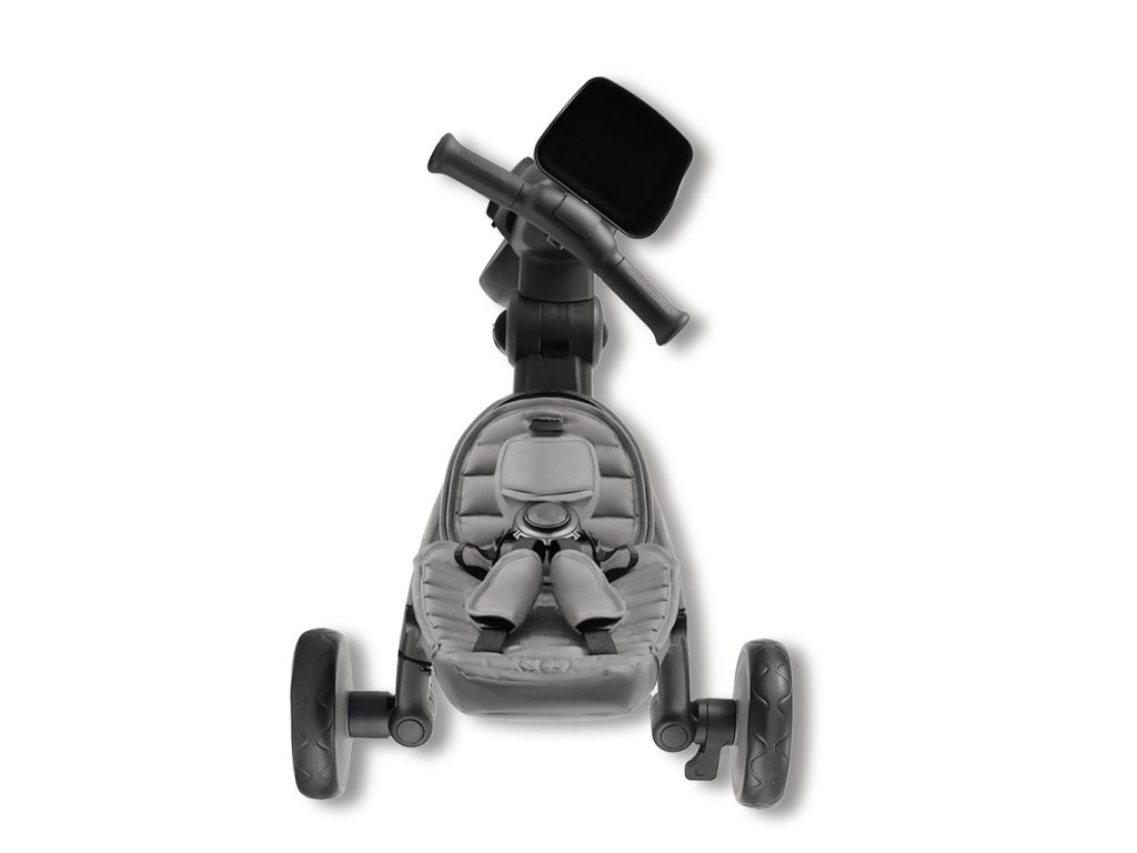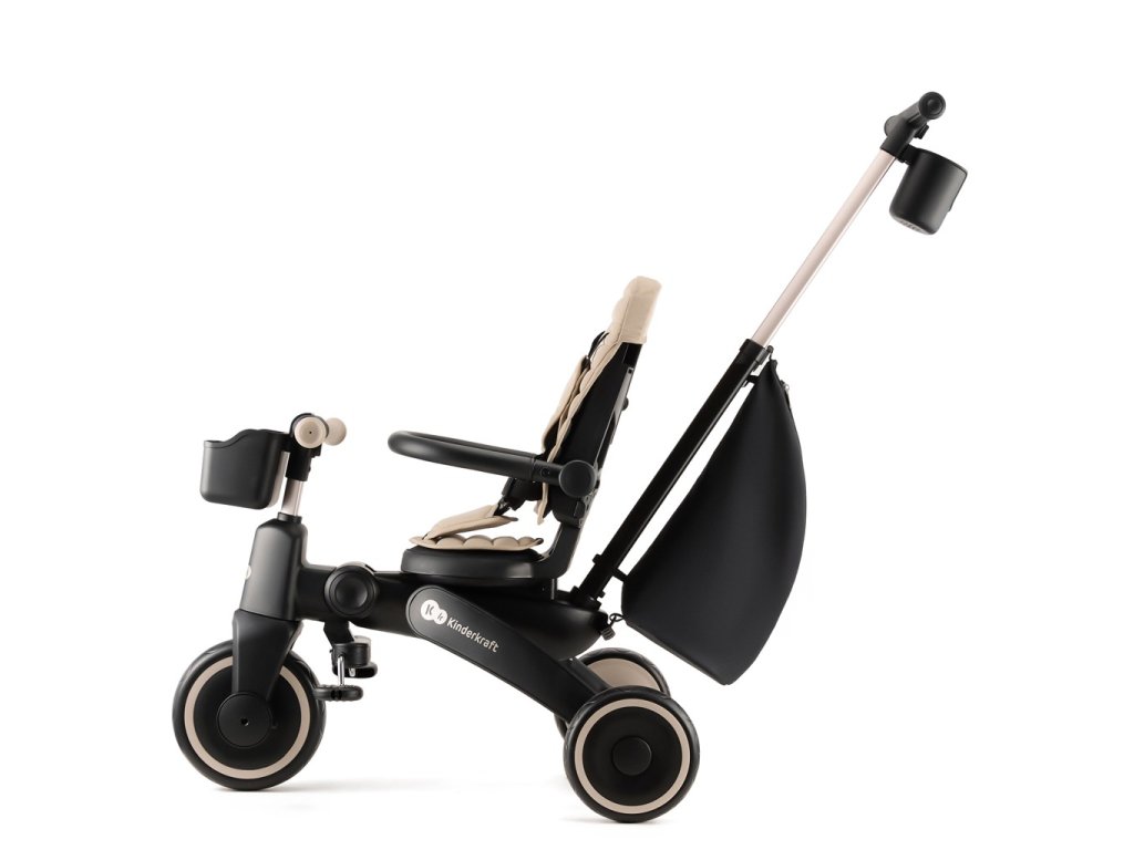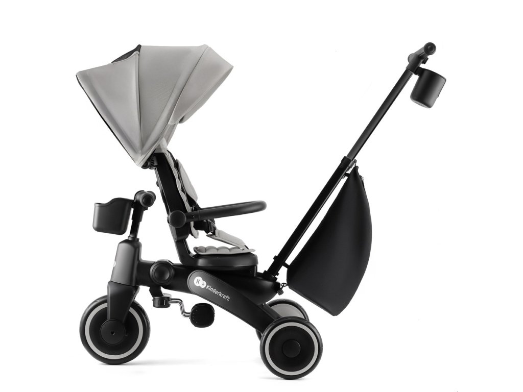 Zahrnuto: Textilní taška připnutá na rukojeť vzadu, zvonek, skládací stříška, sklopná opěrka nohou, odnímatelná bezpečnostní tyč na ochranu dítěte, rodičovská ovládací rukojeť.