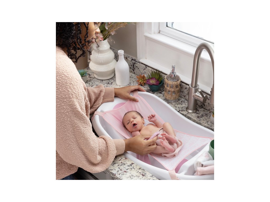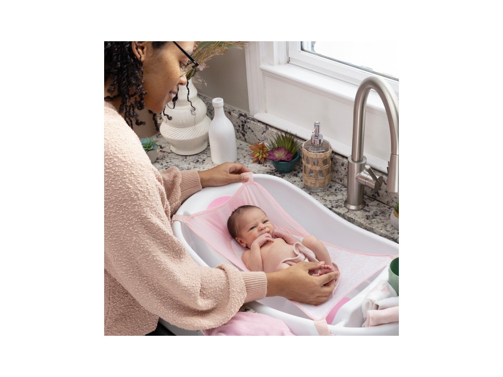 Tato extra velká vanička od předního výrobce vaniček a koupelnového příslušenství obsahuje měkké látkové závěsné lehátko, která jemně drží vaše malé miminko.