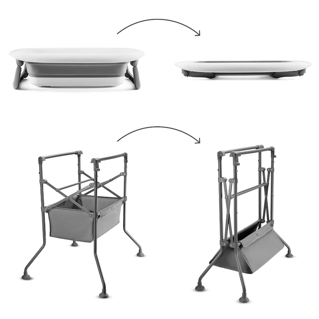 Multifunkční pomocník na koupání a přebalování, doma i na cestách. BUBBLY je ideálním řešením pro rodiče, kteří hledají praktický a prostorově úsporný způsob péče o miminko. Spojuje funkci vaničky a přebalovacího pultu v jednom kompaktním setu, který můžete používat doma, v malých koupelnách nebo si jej jednoduše vzít s sebou na cesty. Vanička má silikonové dno, které umožňuje složení naplocho, a stabilní rám s protiskluzovými nožičkami. Přebalovací pult můžete používat samostatně, zavěsit jej na bok rámu nebo připevnit přímo na vaničku. Praktičnost, bezpečnost a snadnost použití – to vše naleznete v BUBBLY.