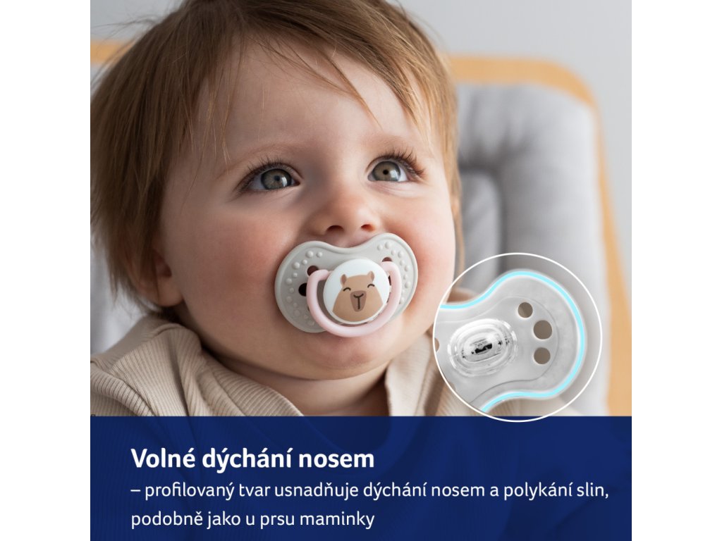 Dynamický dudlík LOVI z kolekce CAPICHILL je bezpečný pro sací reflex a nenarušuje vývoj řeči a skusu*.