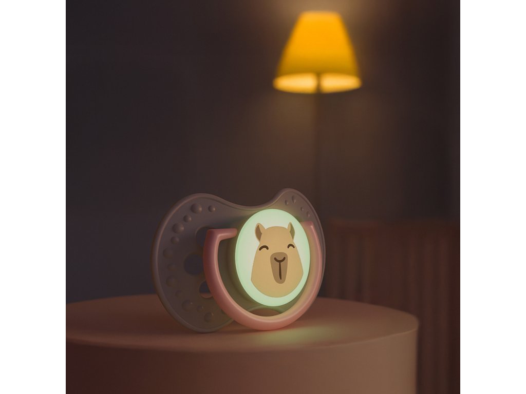 Dudlík má střed a úchytku svítící ve tmě, což usnadňuje jeho hledání v noci