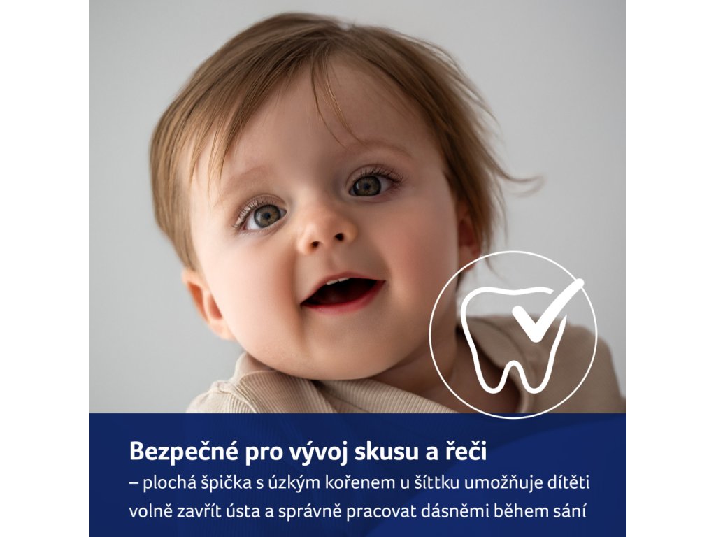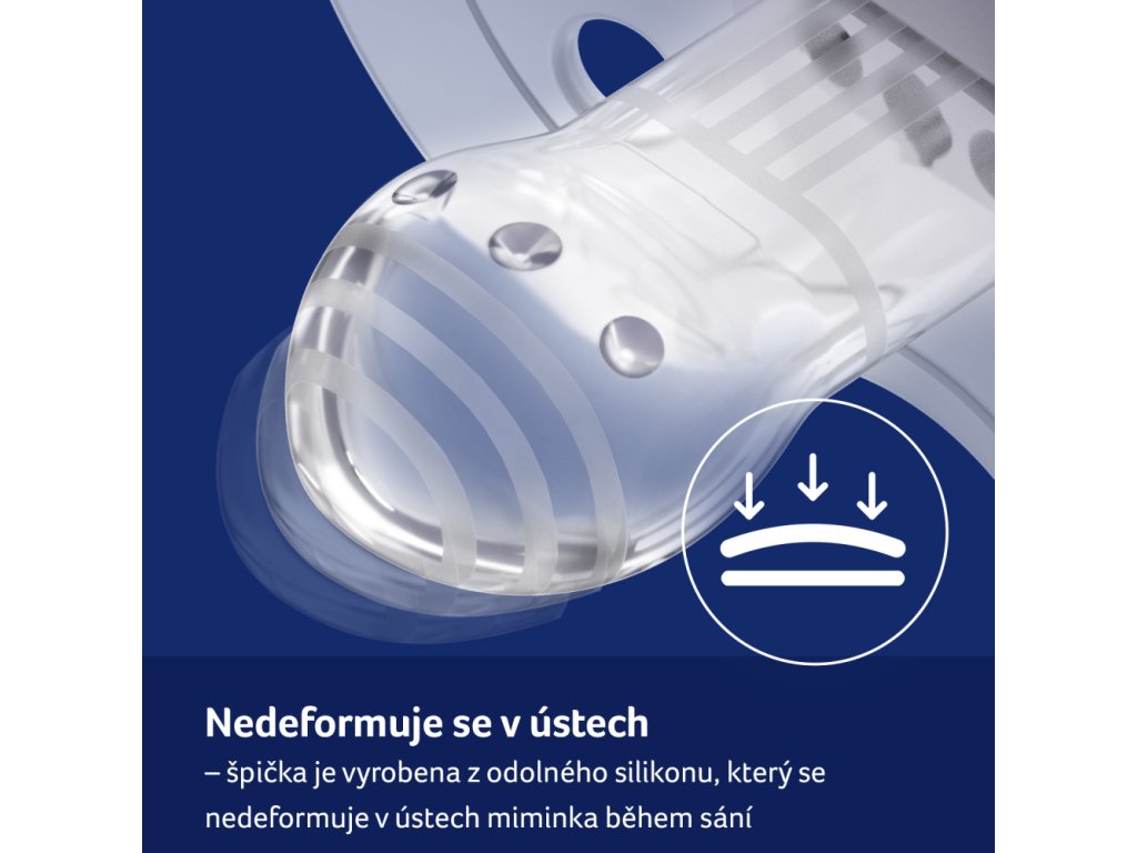 Špička je vyrobena z odolného silikonu, který se během používání nedeformuje v ústech dítěte.