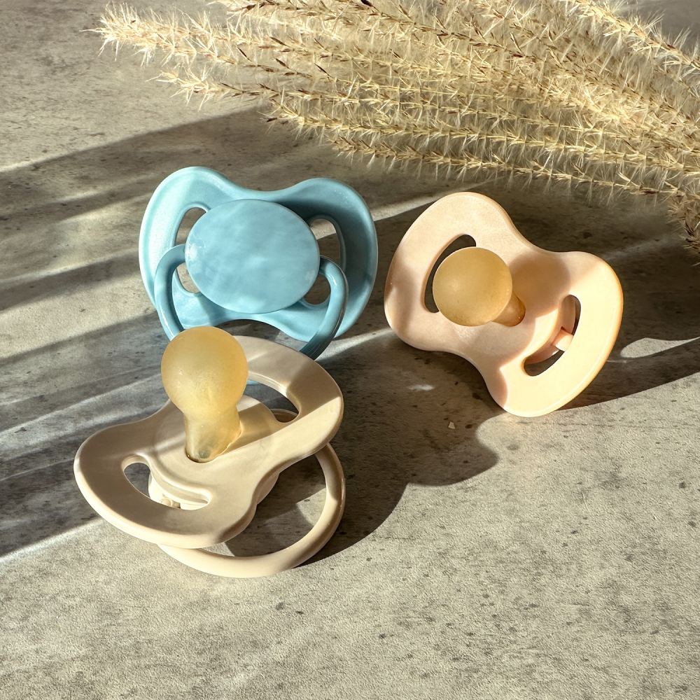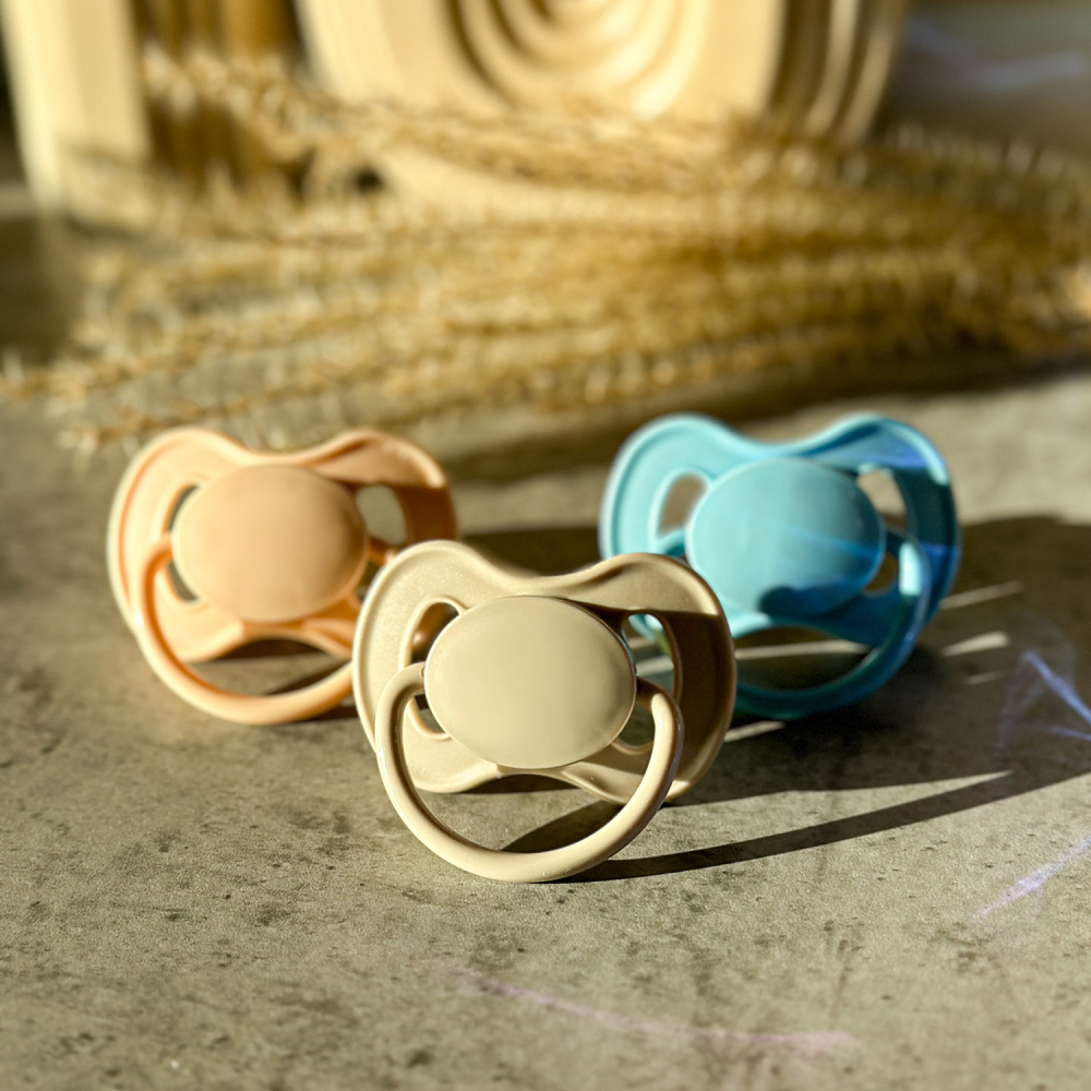 Kaučukový dudlík se savičkou kulatého tvaru v přírodních barvách z kolekce NUDE. Je vyroben z přírodního kaučuku, který je charakteristicky nažloutlý a matný.