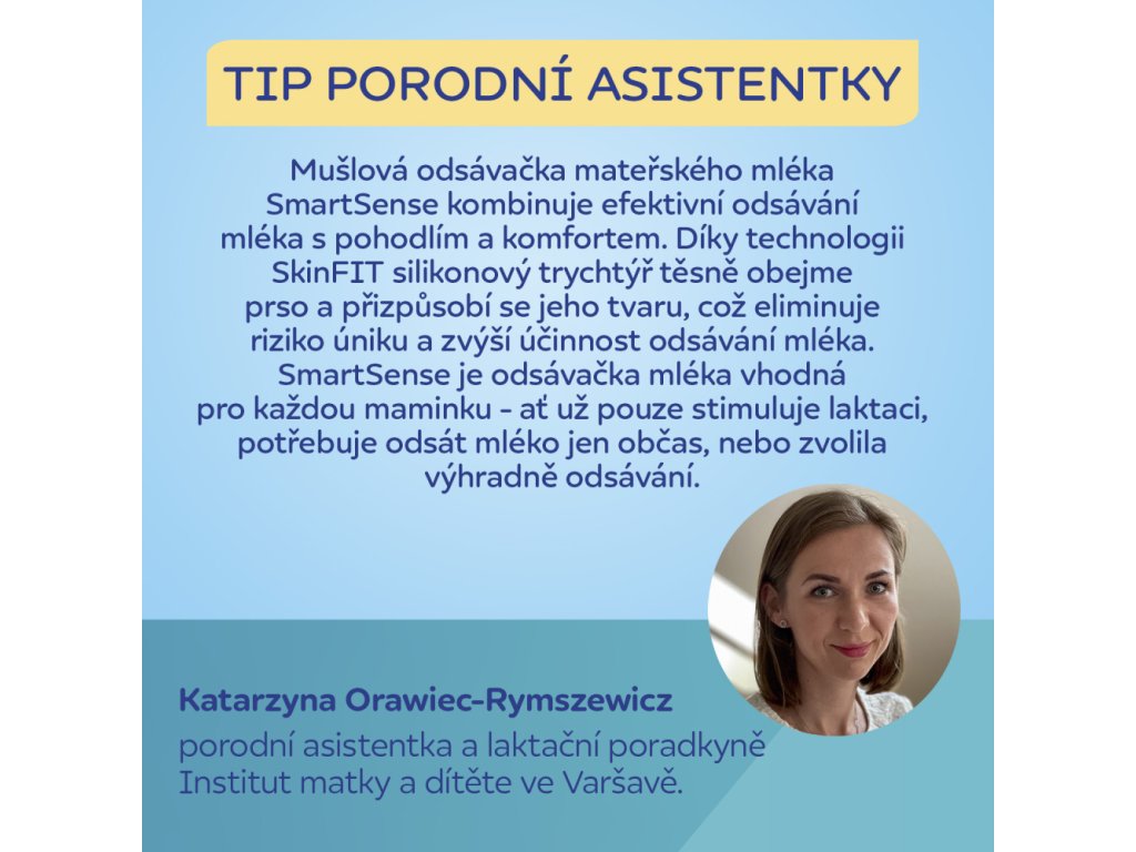 Diskrétní bezdrátová elektrická odsávačka mateřského mléka do podprsenky SmartSense je vhodná pro každou aktivní maminku, je to revoluční „mušlová“ odsávačka nové generace. Skvěle kombinuje pohodlí se svobodou pohybu a podporuje maminky při každodenních činnostech doma, v práci i na cestách. Nabízí extrémně jednoduché sestavení a ovládání.