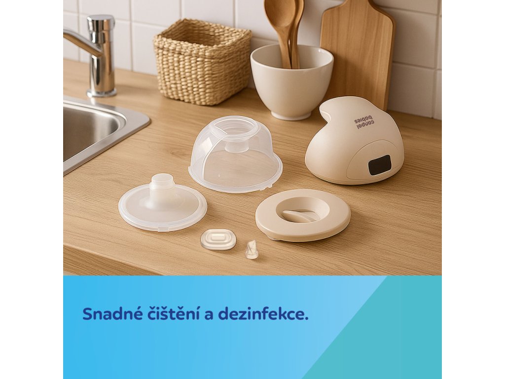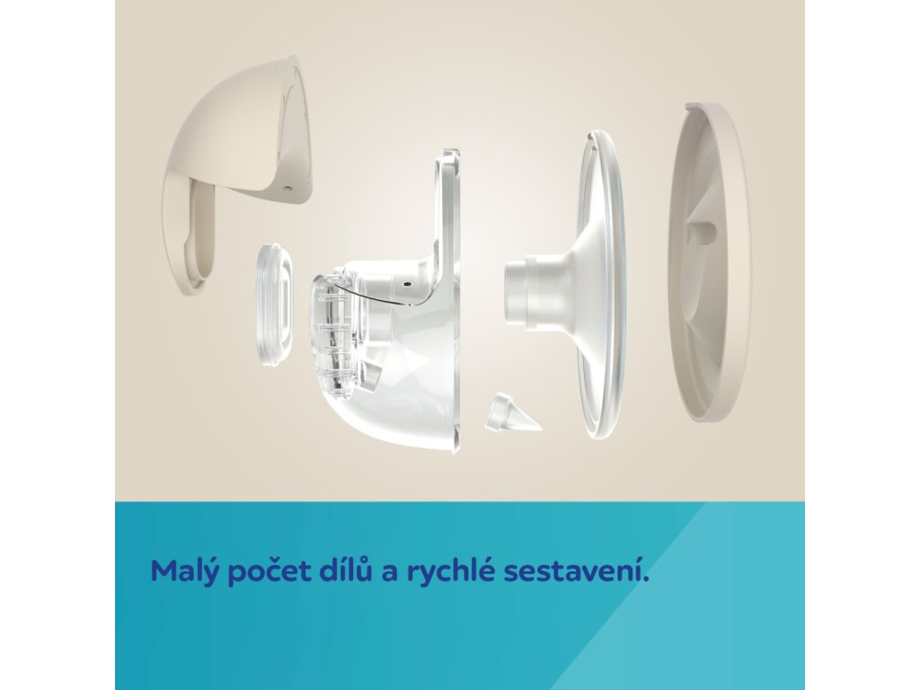 Jednoduchá konstrukce s malým počtem dílů – snadné čištění i složení. Odsávačka je vyrobena z bezpečného materiálu, který je vhodný pro přímý styk s potravinami, včetně mateřského mléka.