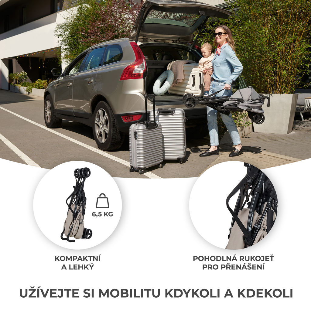 Hledáte lehký kočárek, který můžete složit během několika sekund a vzít si ho s sebou na dovolenou? To je kompaktní sportovní kočárek typu deštník - TIK! Váží pouhých 6,5 kg a je ideální na cesty. Kočárek TIK složíte jako deštník a během chvilky ho uložíte do kufru auta. Bez problémů ho můžete vzít i do vlaku nebo veřejné dopravy.