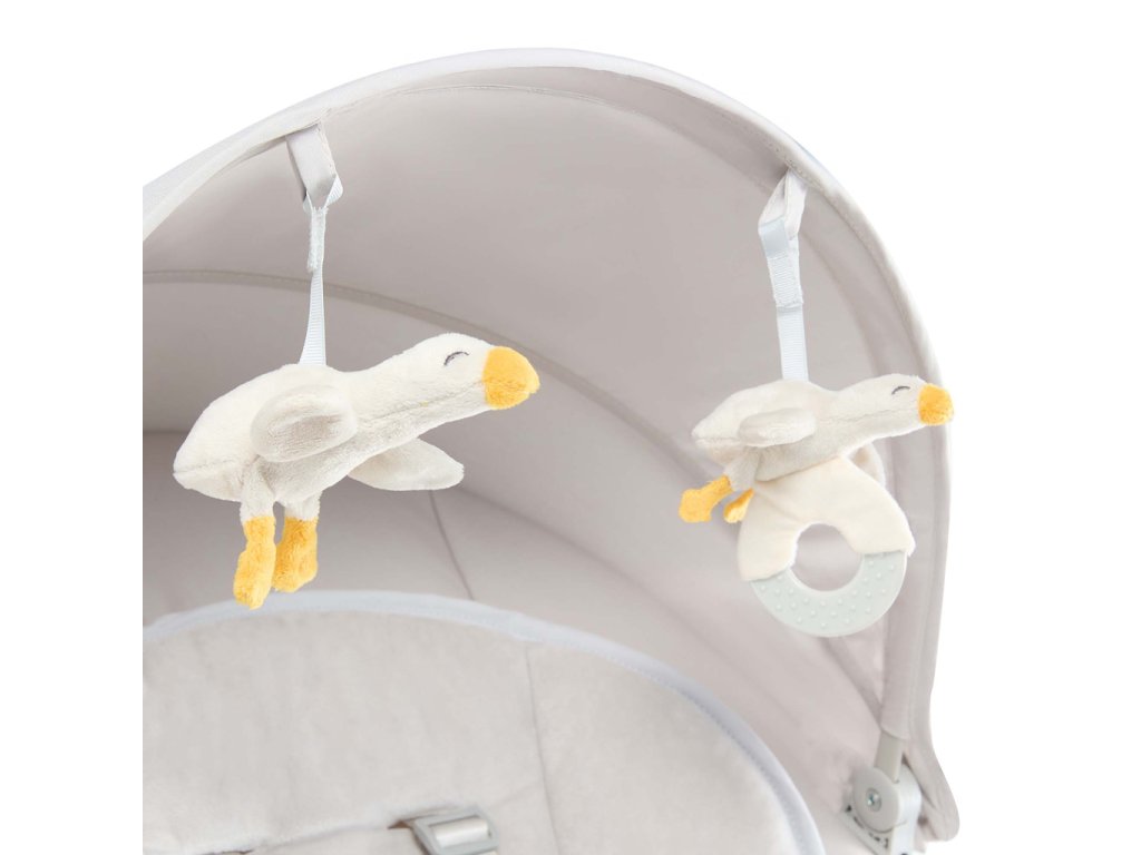- Praktické příslušenství – odnímatelné hračky se postarají o zábavu děťátka, zatímco odnímatelná budka a integrovaná síťka proti hmyzu mu zajistí pohodlí.