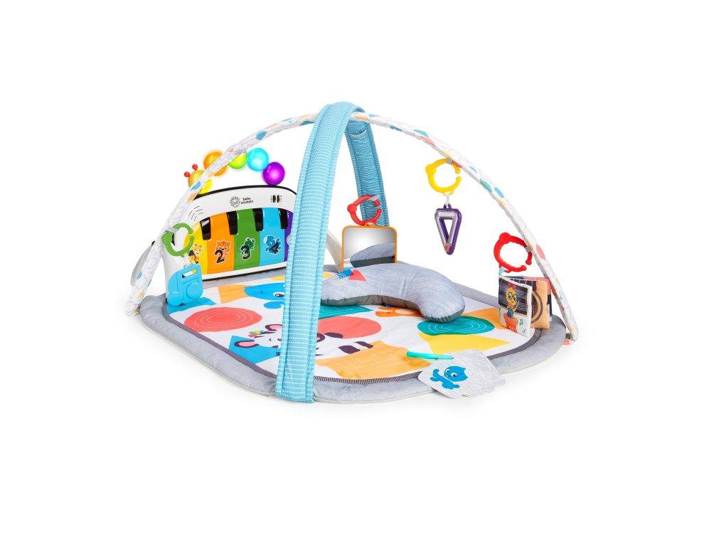 Vychutnejte si perfektně strávený čas s dekou na hraní 4v1 Kickin 'Tunes™ a objevujte svět hudby a rozvíjejte jazyk. Tato vícesmyslová hrací deka je navržena tak, aby rostla s vývojem Vašeho dítěte. Od převalování se z bříška na zádíčka po sezení a hraní až po první krůčky bude tato deka podněcovat zvědavost Vašeho dítěte. Díky technologii Magic Touch bude děťátko umět hrát na klavír jen stiskem prstu nebo kopem nohy. Nejsou zapotřebí žádná tlačítka. Pomocí všech svých smyslů bude zkoumat sedm zajímavých hraček a více než 70 melodií, zvuků a frází ve třech jazycích. Objevování nikdy neskoční a Vaše děťátko si tak bude rozvíjet svou představivost a také zdokonalovat motorické dovednosti. Obsahuje 7 odnímatelných hraček včetně klavíru Magic Touch a jeden polštářek. Díky této dece a ostatním produktům značky Baby Einstien vyroste z vašeho miminka malý Einstein, který se ve světě jen tak neztratí.
