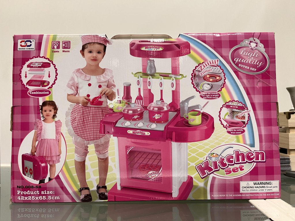 Kuchyňka je vybavena elektronickými funkcemi na baterie – vydává zvuky a svítí, což zajišťuje realistický zážitek z vaření.