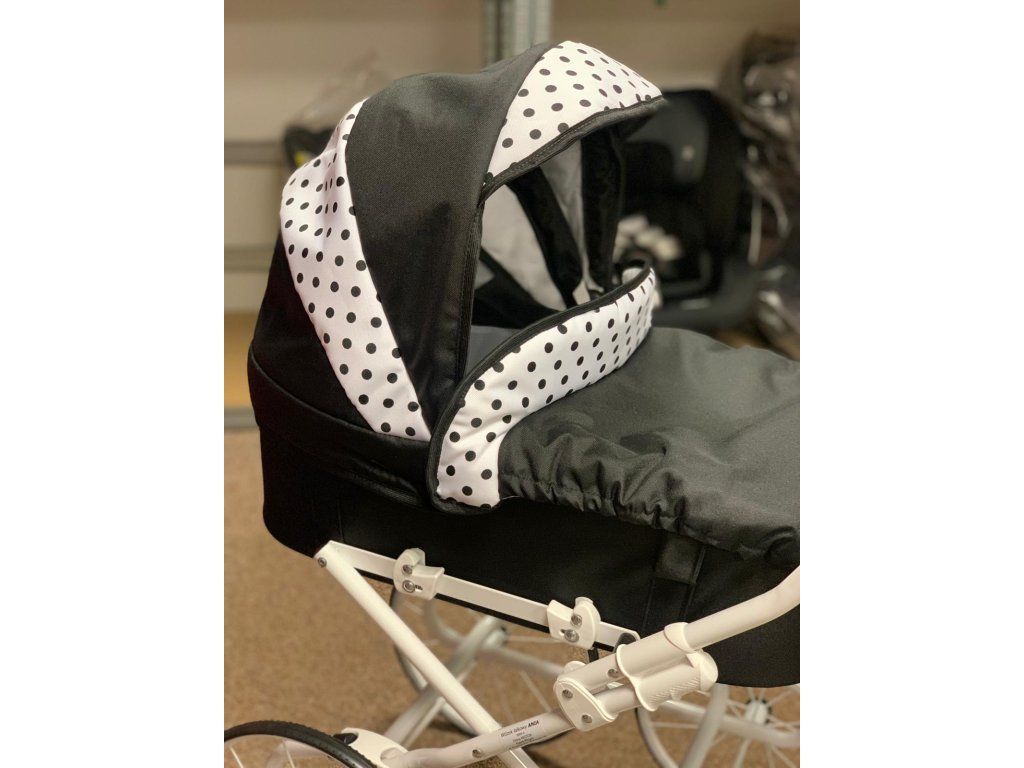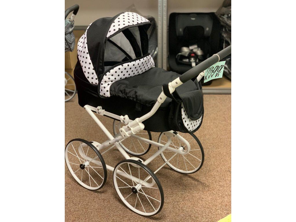 Nestor Ania - Retro kočárek pro panenky - Černý + puntík