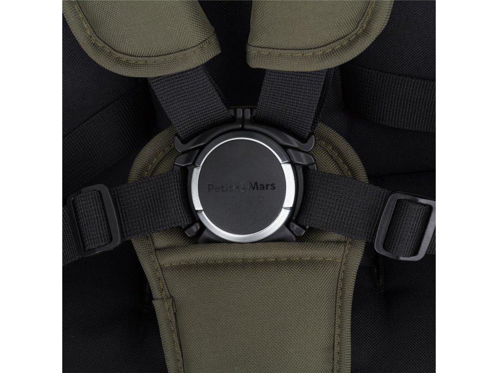 - Pětibodové nastavitelné bezpečnostní pásy uzavíratelné magnetickou přezkou.