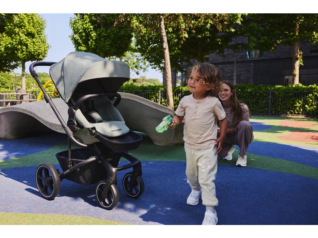 Ať je počasí jakékoli, není třeba se bát. Vaše miminko zůstane ve stínu nebo pěkně v suchu díky extra velké stříšce Harvey, která poskytuje ochranu před sluncem UPF 50 a je vodoodpudivá.