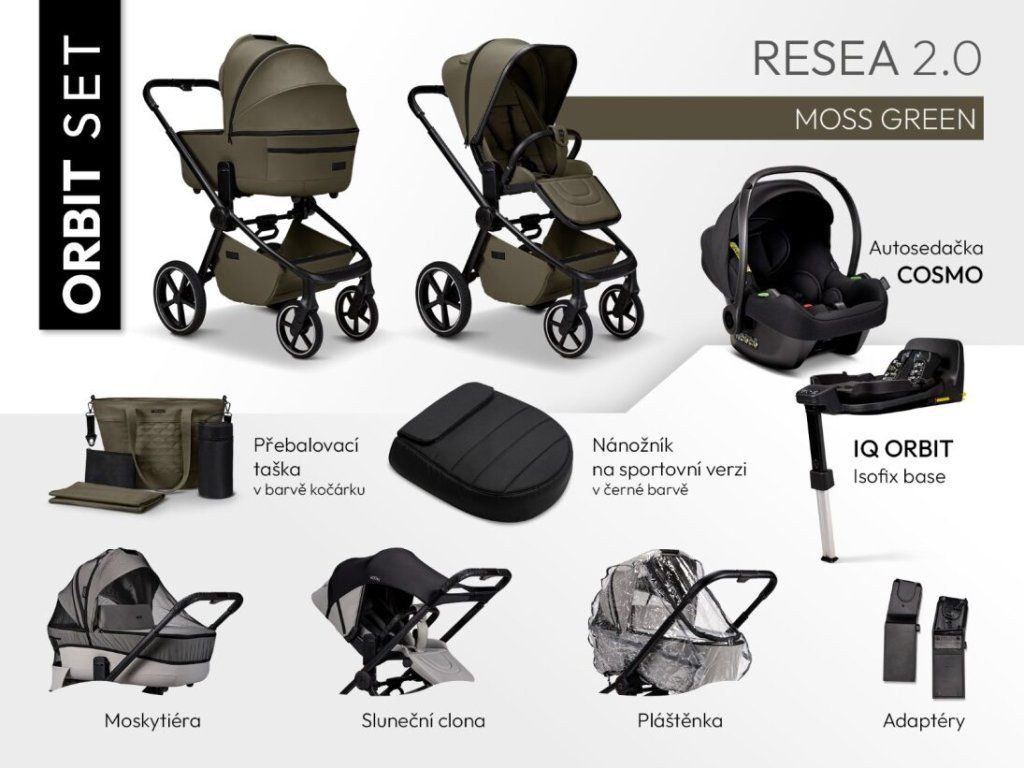 MOON - ReSea 2.0 ORBIT Kočárek + příslušenství + autosedačka COSMO + báze ORBIT