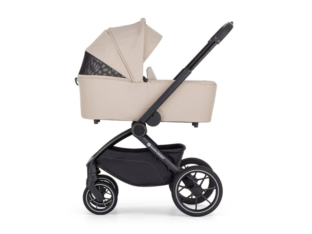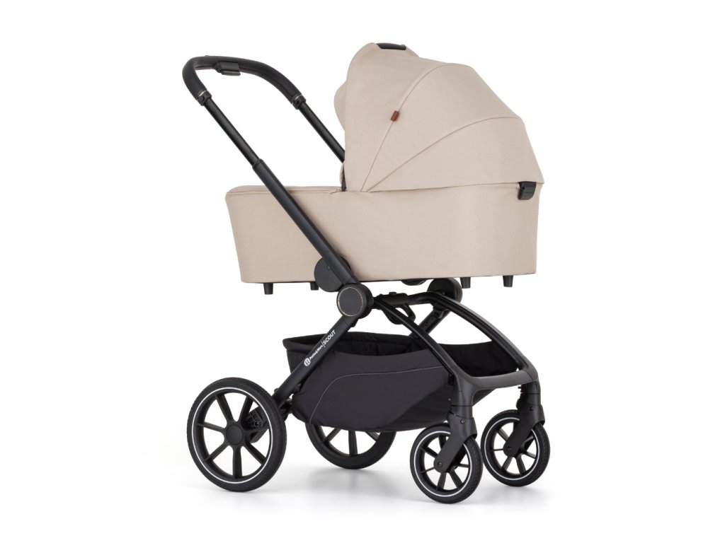 SCOUT je kočárek pro rodiče, kteří chtějí být v pohybu a zároveň mít jistotu, že jejich miminko má pohodlí od prvních dnů. Jedná se o plnohodnotnou kombinaci 2v1 – stabilní, elegantní a praktickou – připravenou do města i na výlety.