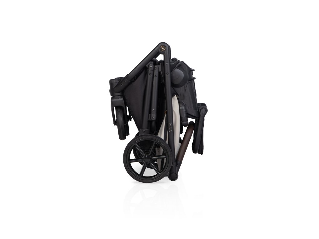 MILA se kompaktně složí do volně stojící polohy. Další ramenní popruh umožňuje nošení kočárku přes rameno, což výrazně usnadňuje jeho přenášení (obě ruce zůstávají volné). Kočárek lze složit se složenou sedací částí bez ohledu na orientaci.