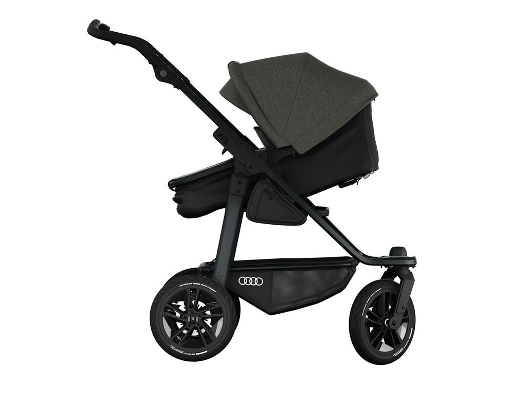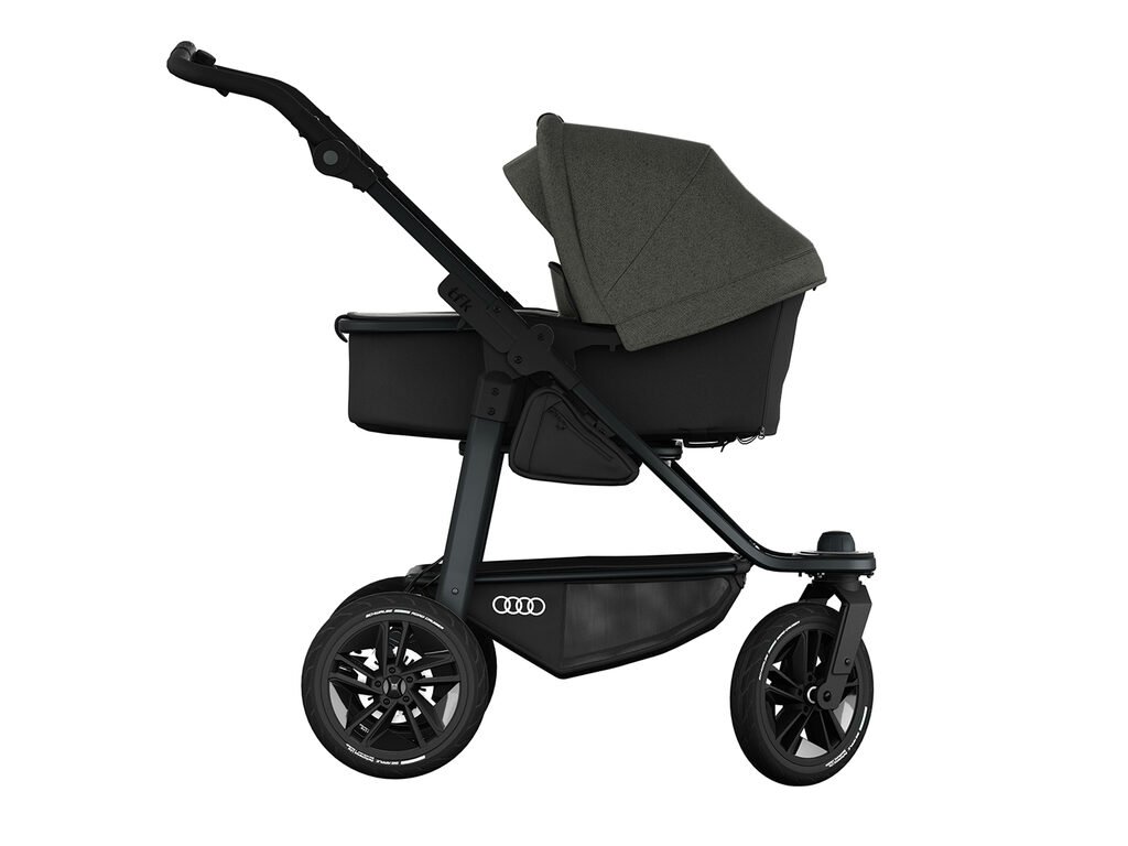 Konstrukce prémiového terénního kočárku pro všechny rodiče, kteří milují outdoorové aktivity i procházky městem, nyní ve speciální verzi Audi Edition. Agilní tříkolový kočárek vhodný pro každou příležitost. Ať už se vydáte přes kopce a lesní cesty nebo do městských ulic, tfk mono3 Audi Edition nabízí dětem i rodičům nejen množství praktických funkcí, ale také jedinečný komfort a design inspirovaný modelem Audi e-tron GT. Jako kombinovaný kočárek lze tfk mono3 používat již od narození.