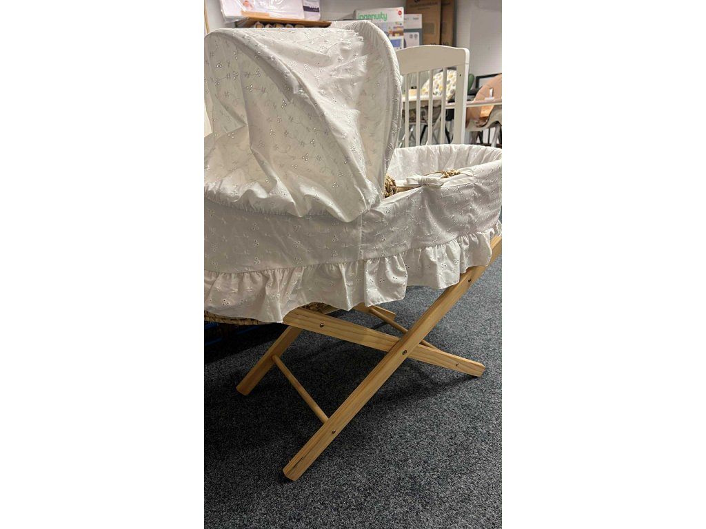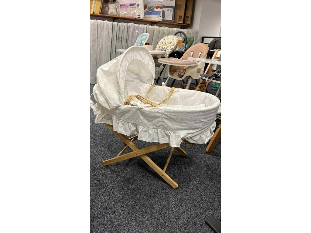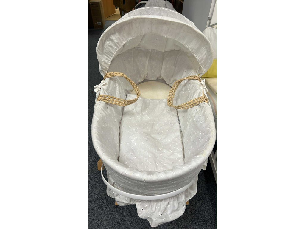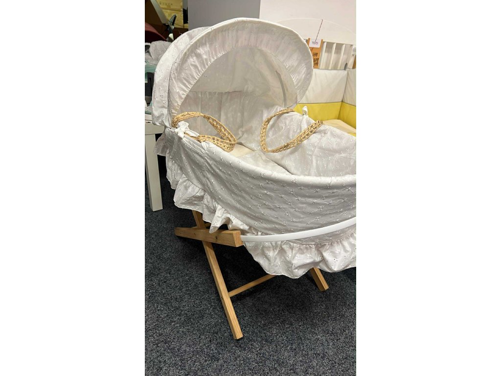 Mojžíšův koš pletený z přírodní trávy, ucha na přenášení, matrace, peřinka