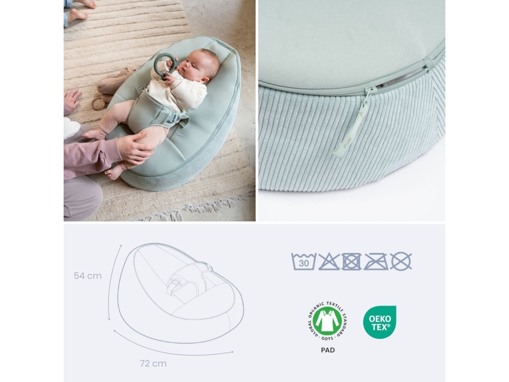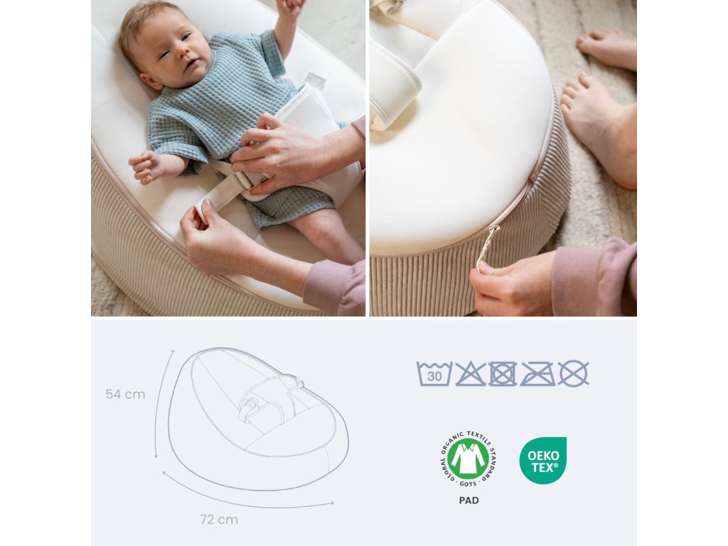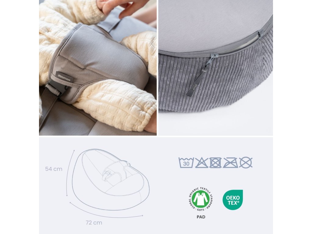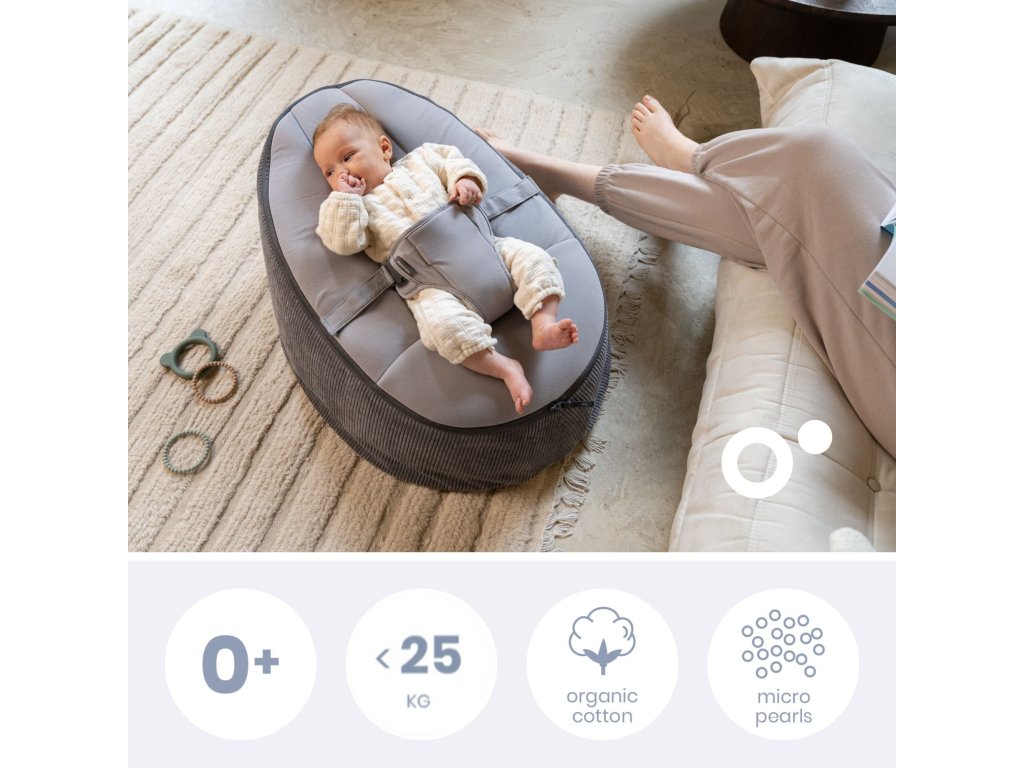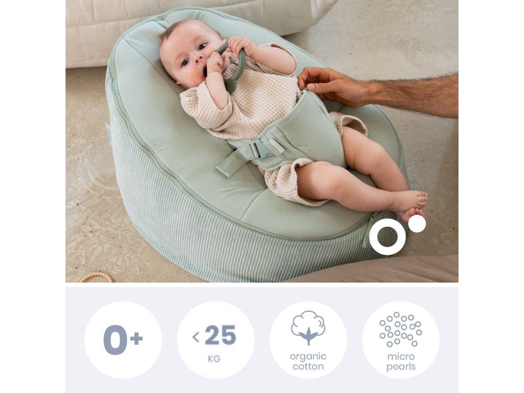 Multifunkční vak Doomoo Seat'n Grow bude vašemu miminku příjemným útočištěm od narození až do 25 kg. Díky výplni z mikrokuliček se dokonale přizpůsobí tělíčku dítěte a poskytne mu pocit bezpečí, jako by bylo u maminky v bříšku. Měkký potah ze 100% organické bavlny s certifikací GOTS a Oeko-Tex zajistí maximální pohodlí a bezpečnost.