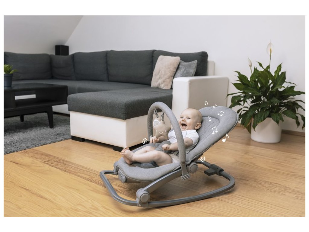 Pro uklidnění dětí nabízí lehačka možnost vibrací nebo příjemných melodií, a to nezávisle na sobě. U melodií lze volit mezi ukolébavkami či zvuky přírody. Hlasitost zvuků i intenzitu vibrací je možné nastavit ve třech stupních intenzity. O zábavu i těch nejmenších dětí se postará také hrazda s hračkami.