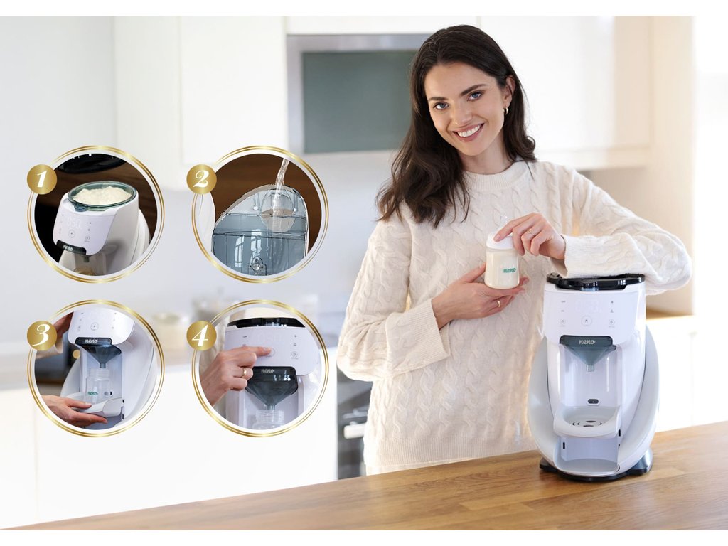 - Mléko připravené za sekundy: Přístroj připraví dokonalou láhev s mlékem za několik sekund. Stačí nasypat upravené mléko a studenou převařenou vodu. Přístroj zajistí správnou teplotu bez zbytečného zmatku nebo nepořádku.
