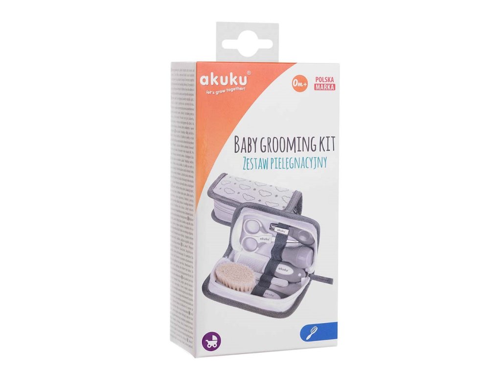 Nůžky (s tenkými kovovými čepelemi a zaoblenými hranami) a kleštičky na nehty pomáhají bezpečně a spolehlivě stříhat nehty a pilník na nehty snadno odstraní nerovnosti a chrání dítě před poškrábáním. O hlavičku vašeho dítěte se postará kartáč s měkkými přírodními štětinami a hřeben s protiskluzovou rukojetí. Nosní odsávačka s měkkou špičkou je navržena tak, aby uvolnila dýchací cesty a maz z uší dítěte.