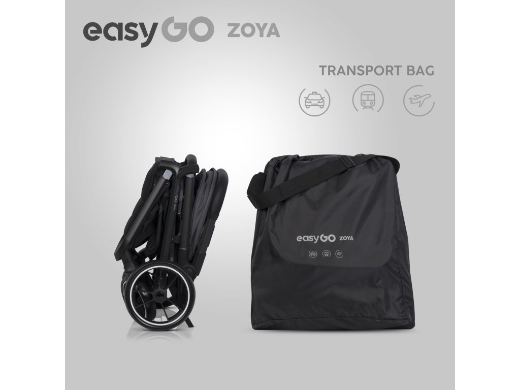 Ke kočárku EASYGO ZOYA lze dokoupit stylovou taškou, která se připevňuje k rukojeti kočárku a má další ramenní popruh. Taška je vyrobena ze stejné látky jako kočárek, takže je perfektním doplňkem. Taška je vyztužená a její dno je vyrobeno z ekokůže odolné vůči skvrnám. Má vnitřní i vnější kapsy.