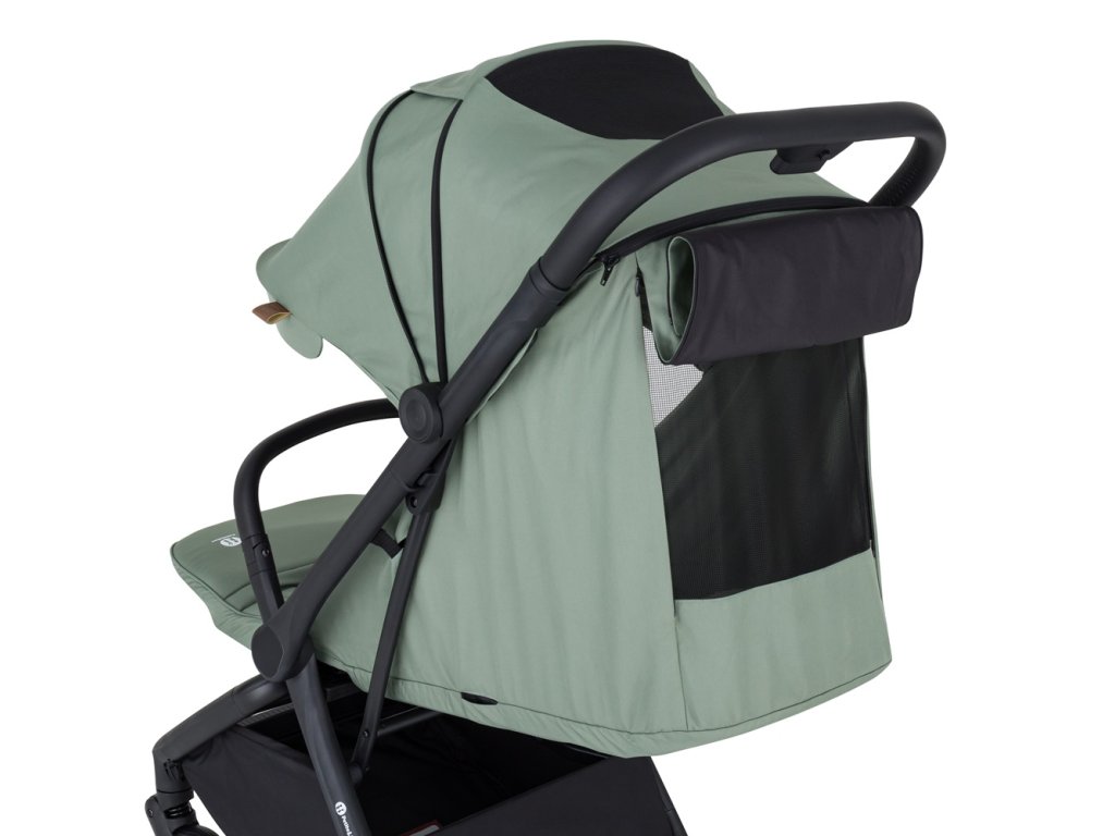 - Rozšiřitelná stříška s černým zipem a integrovaným kšiltem s UPF 50+