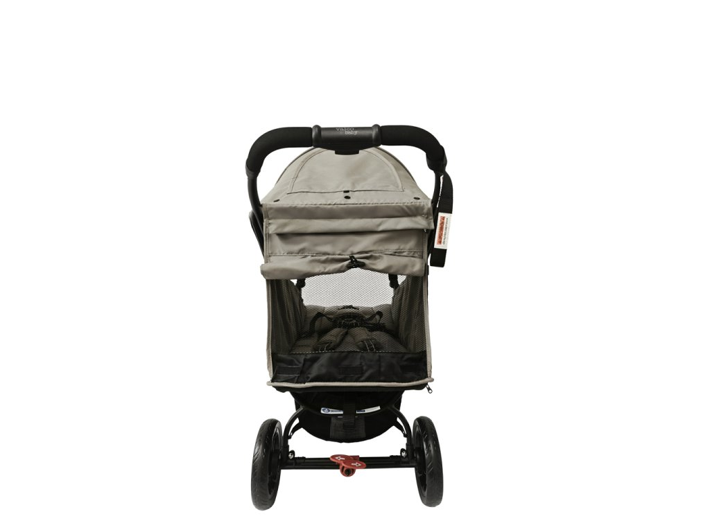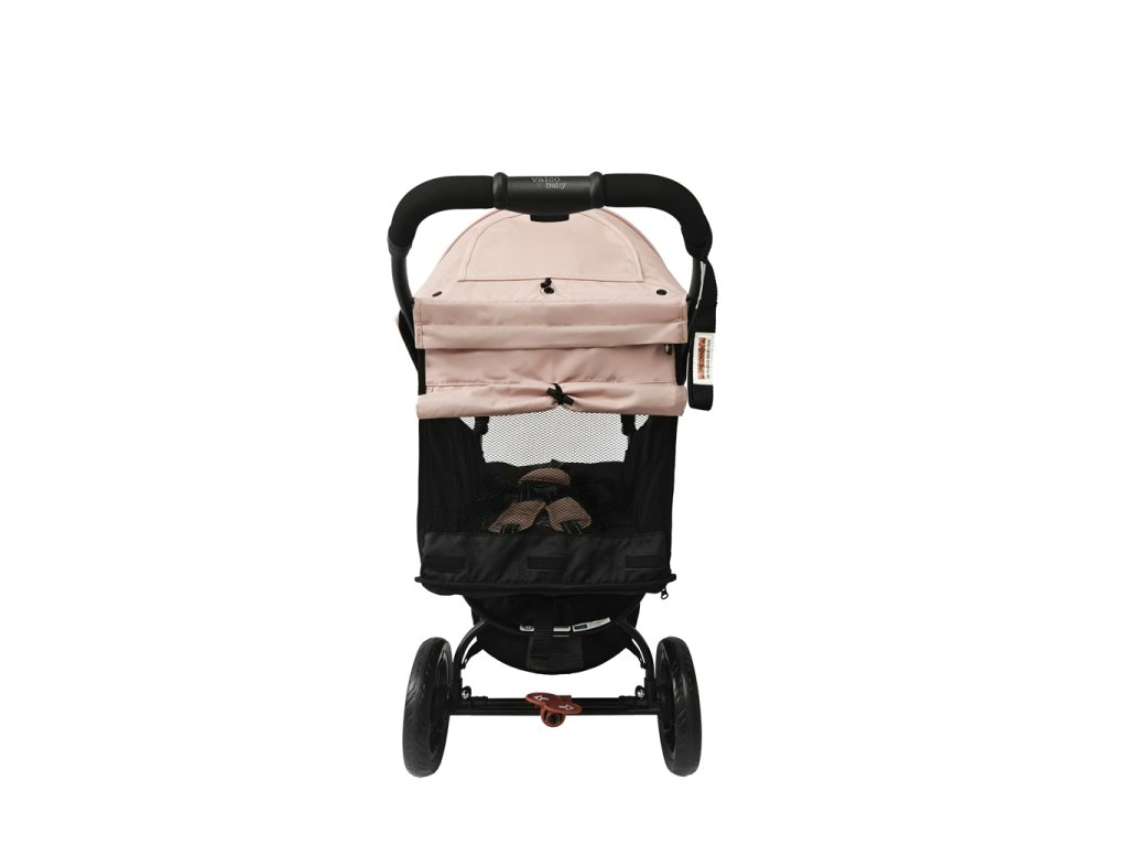 - Zadní část opěrky obsahuje dvě praktické kapsy, tuto část lze navíc srolovat, čímž se odkryje síťované okénko, díky kterému může vzduch v kočárku cirkulovat bez omezení iv teplejších dnech.