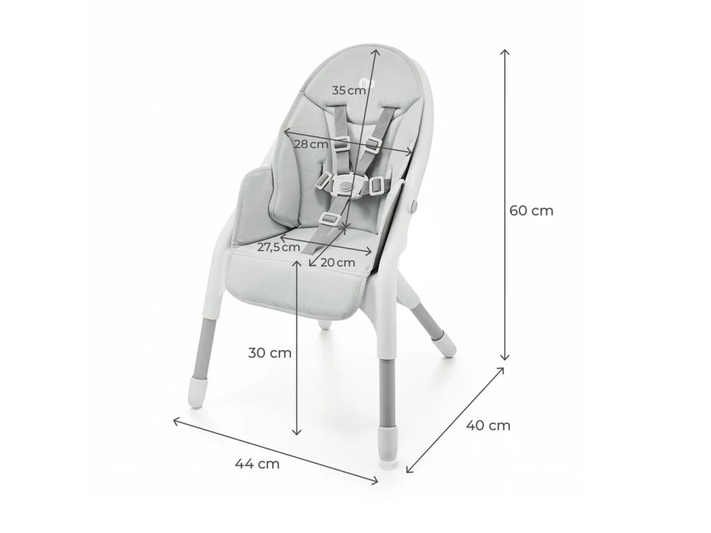 Jednoduchým odstraněním popruhů se z vysoké židle stane nízké sedátko pro dítě do 15 kg. Toto praktické řešení poskytuje pohodlí a roste s potřebami vaší rodiny.
